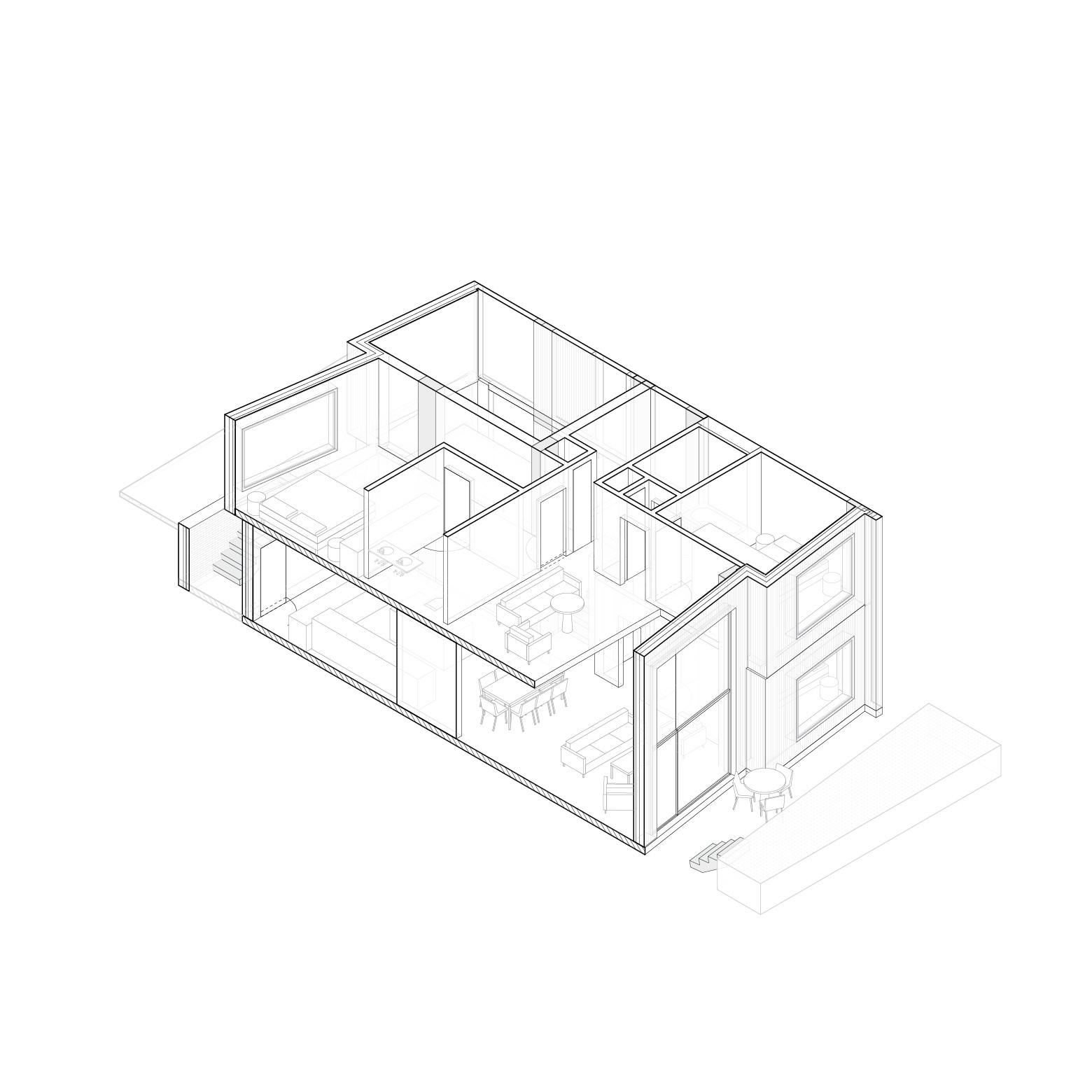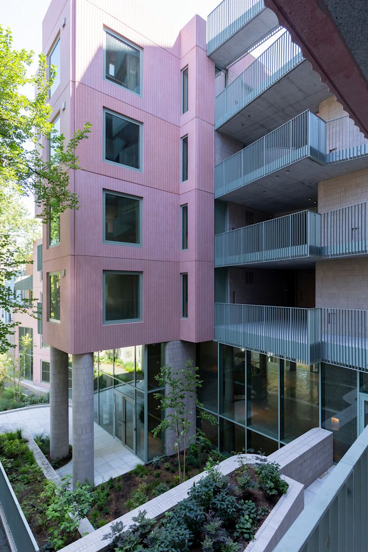 The units are designed to engage residents in multiple environments simultaneously. Every apartment enjoys access to both the lively street front and the more serene interior of the site. Residents also have proximity to shared outdoor spaces within the building, encouraging outdoor living, neighborly interactions, and engagement with the building's communal life.