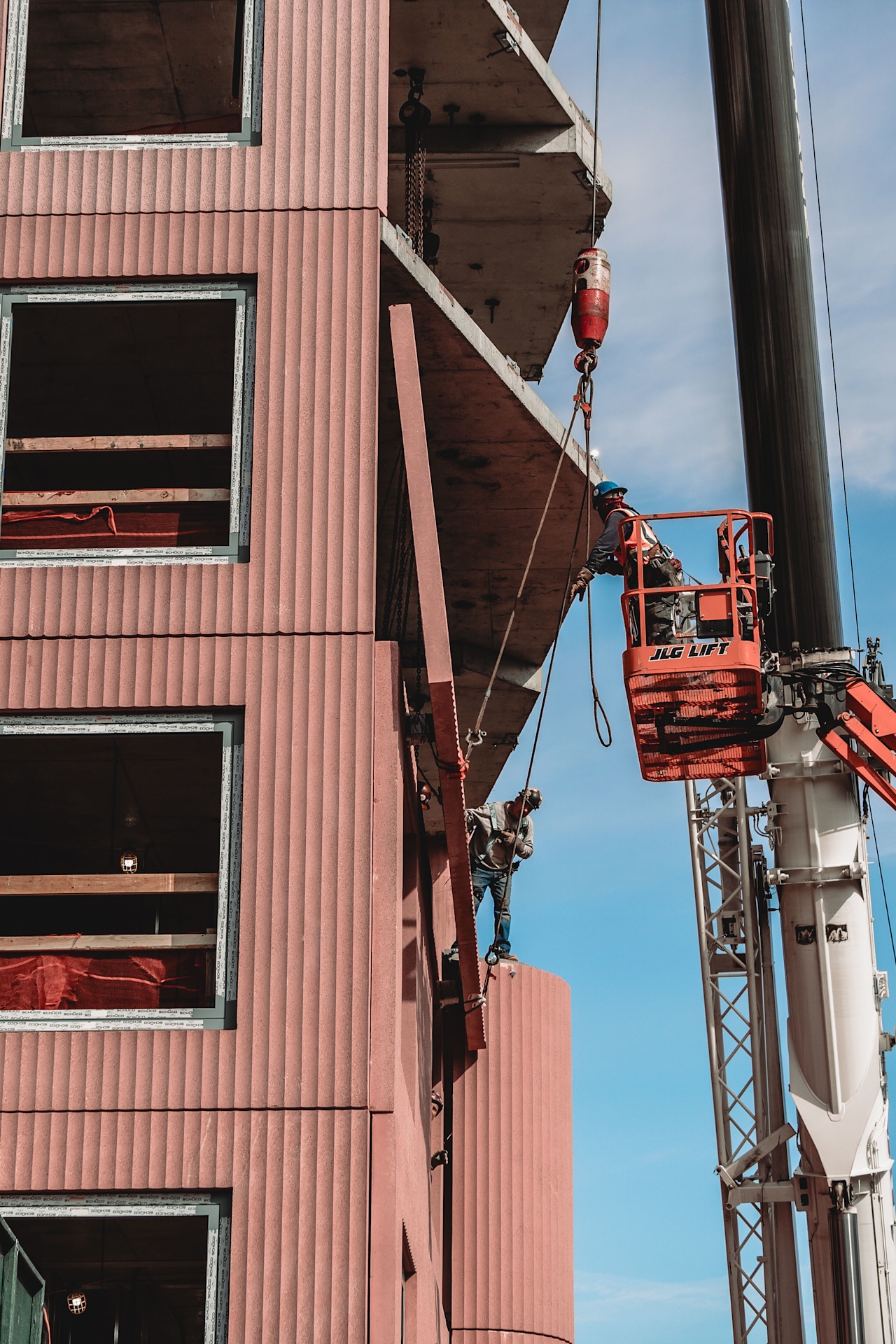 The building's facade comprises precast concrete panels of varying shape, size, and finish. This diversity contributes to the building's unique and robust urban appearance, marking it as a bespoke architectural piece within New York's multifamily housing landscape.