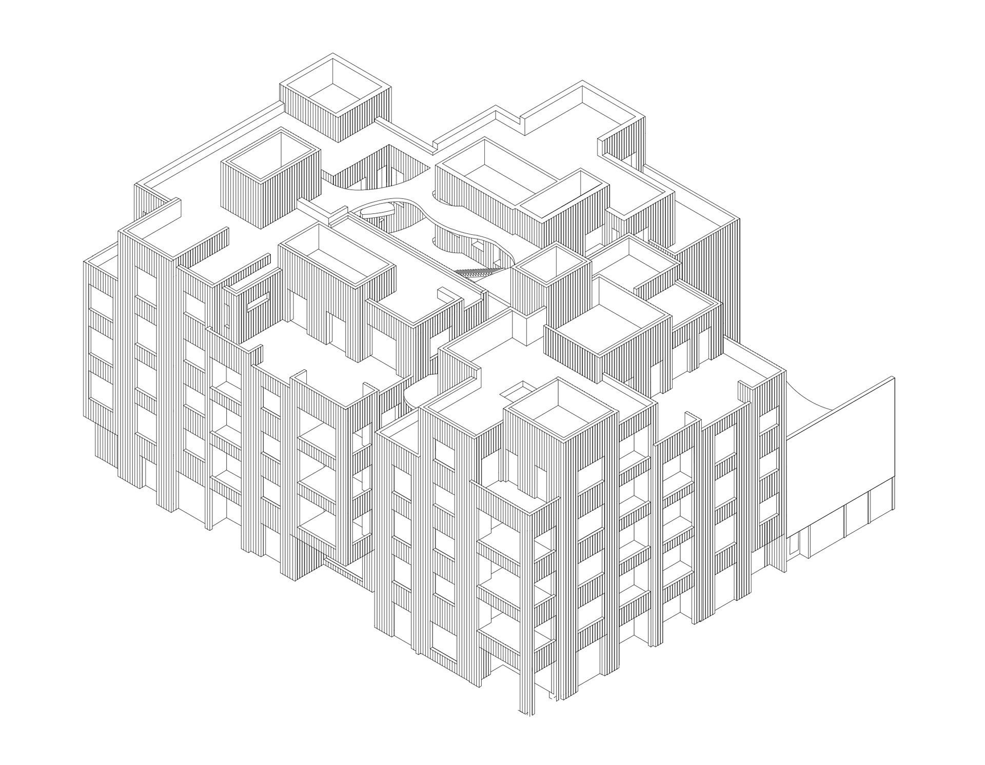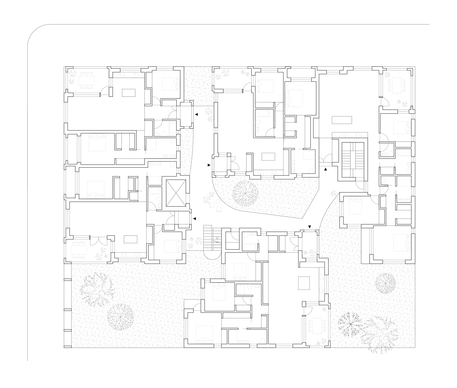 Our design frees urban multi-unit dwelling from traditional protocols. We engage with what makes the city more livable: conversations with the outdoors and conversations with others.