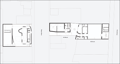 Public routes channeled through large city blocks circulate the community in a new way. Courtyards and thoroughfares weave through and between existing buildings and make public functions sunk deep within accessible to all visitors beyond the more private spaces at the periphery.