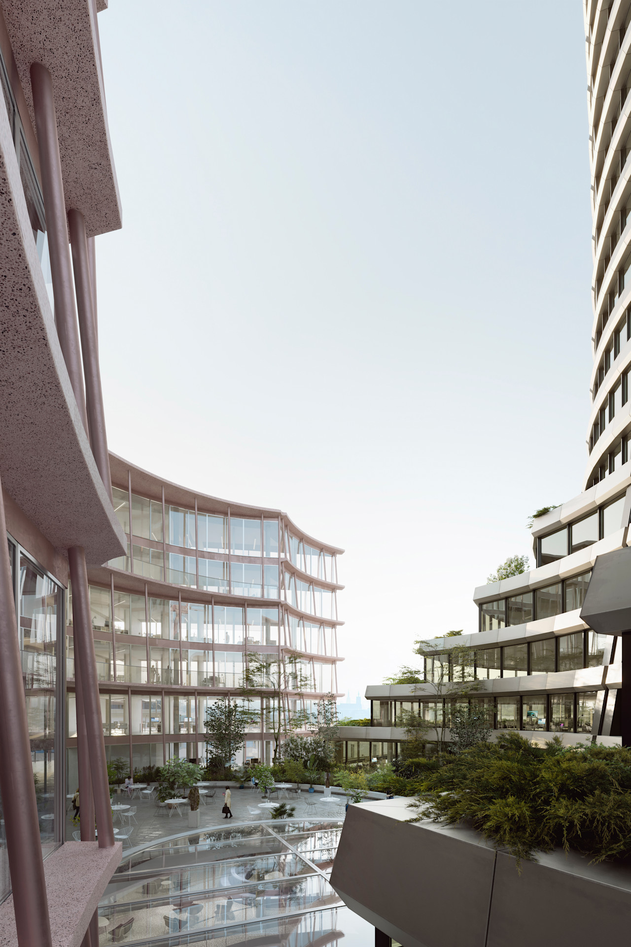 The architectural expression of the New Development is dynamic and light. Inviting curves complement the tower’s centrality, while stepped accessible terraces echo the existing plinth. Forming the institution's heart, an urban oasis situated between old and new protects from the bustling city beyond. The stepped terraces of the tower, previously inaccessible, become part of this inner courtyard. Facing the station, an open plaza anticipates the plot’s urban centrality and leaves a site for public usage. Poised to receive a new tower in a distant second phase of development, the BIS Plaza offers a public amenity for the foreseeable future while leaving maximum flexibility for the second stage.