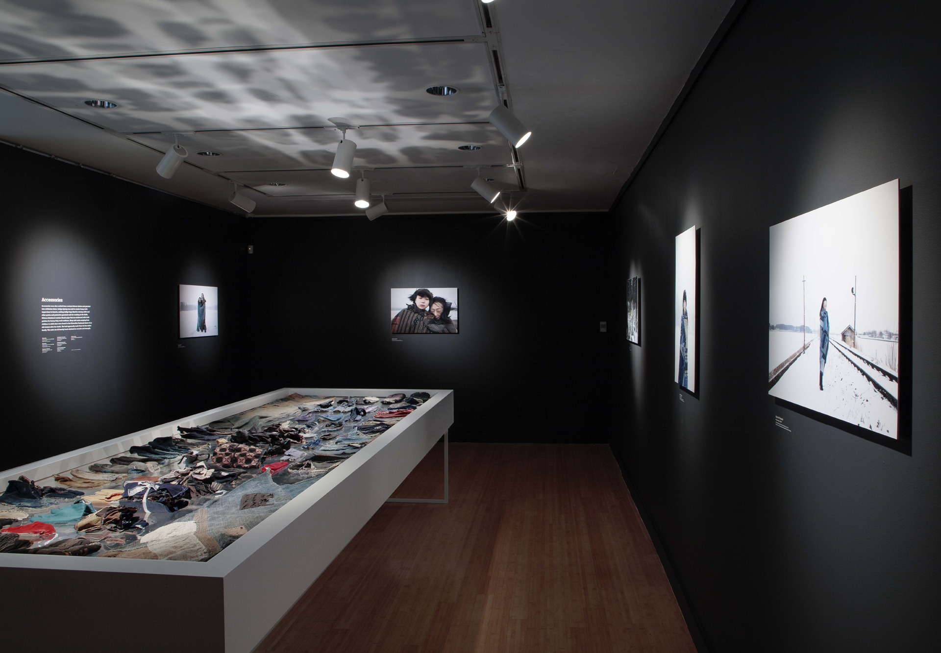 Underneath each piece is a vitrine lined with reflective mylar so that visitors can view each from all angles. Lights are suspended from within the garments so as to give the impression of a warm heart beating inside.