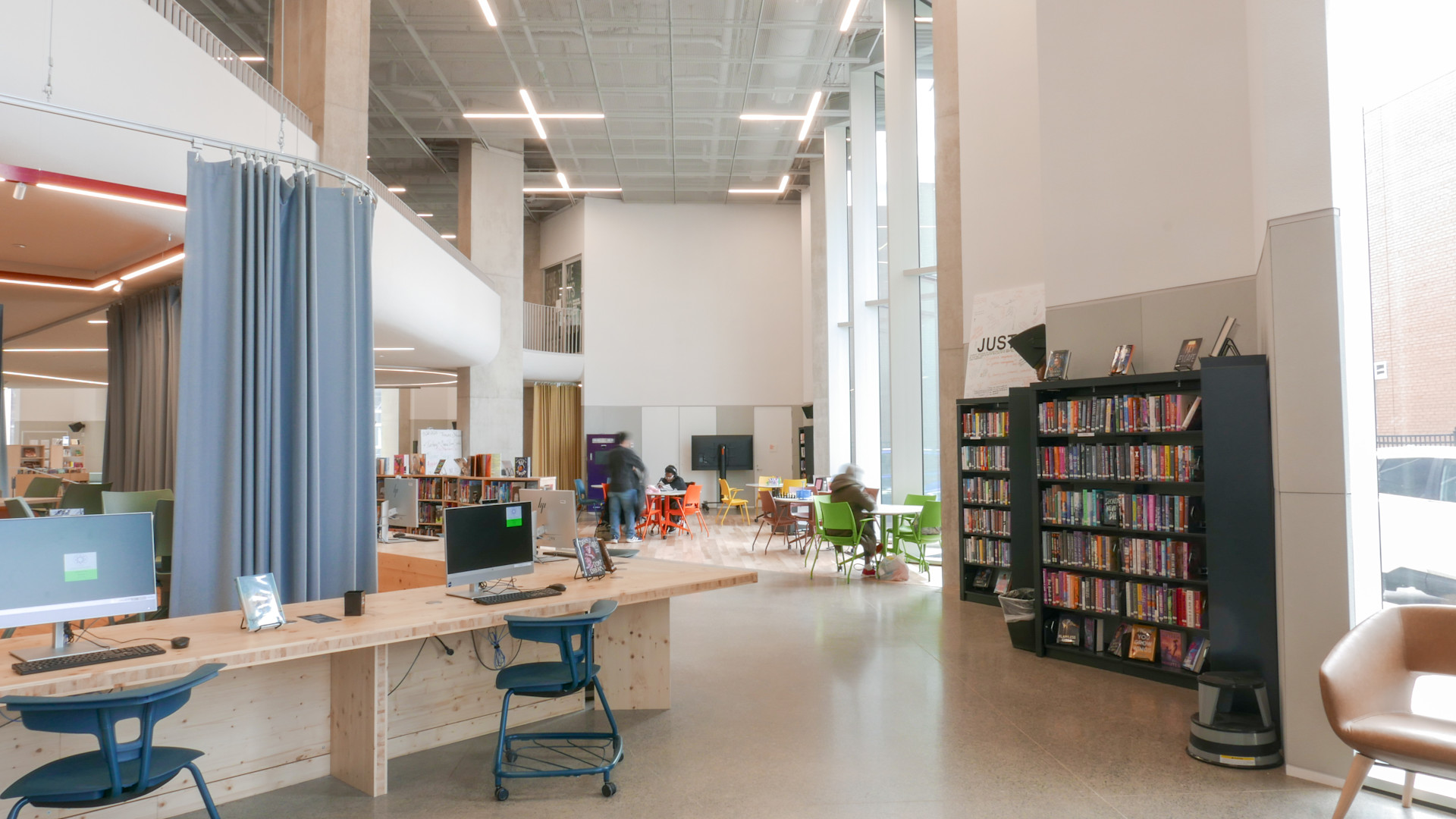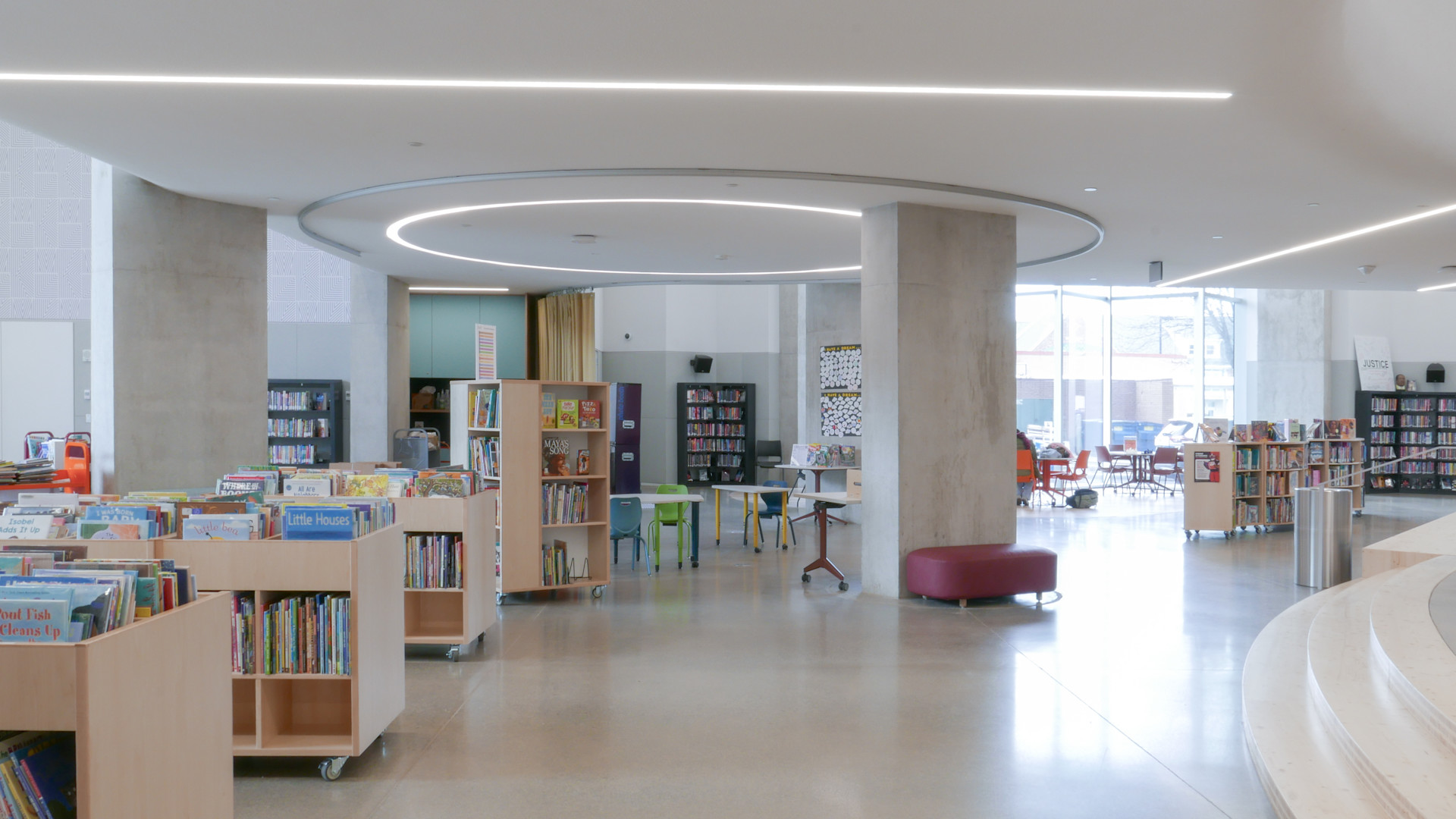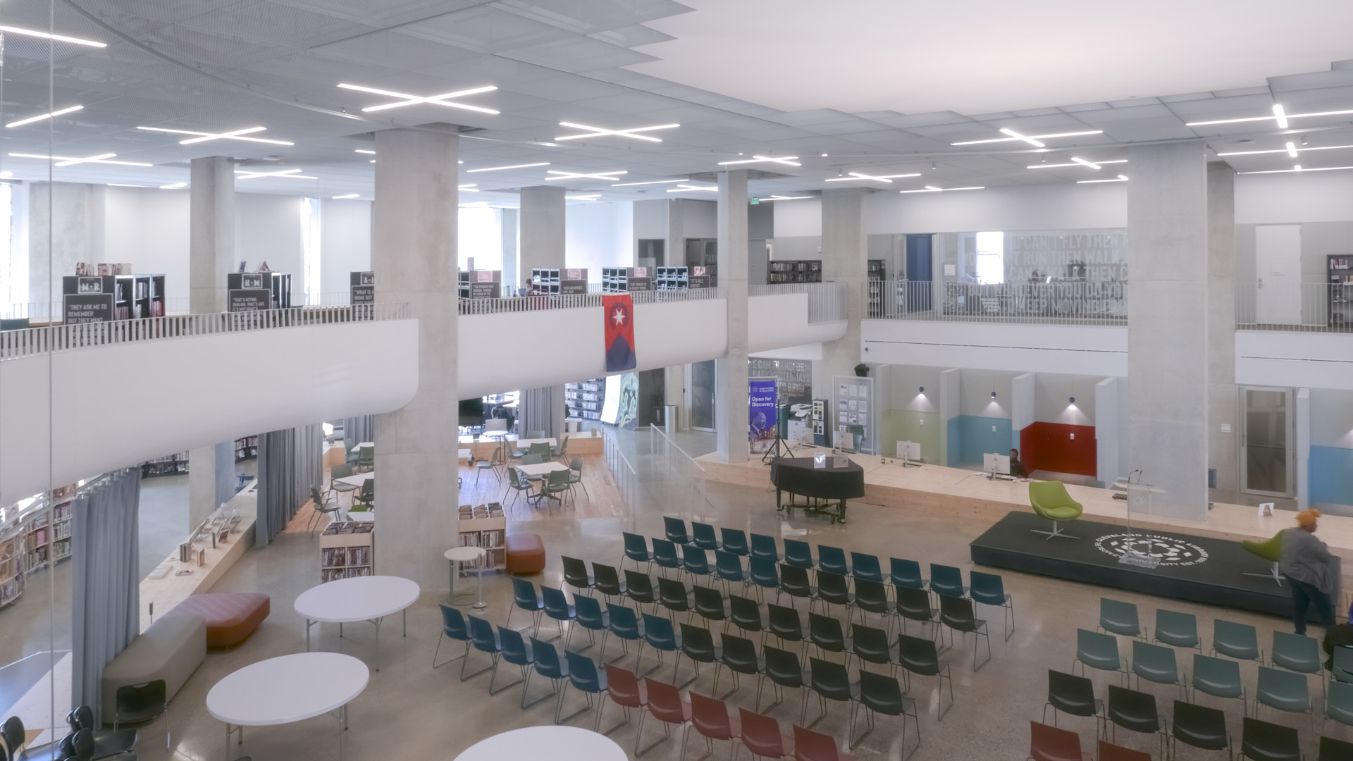 More than a single volume, the branch unfolds as a sequence of spaces that support reading, performance, study, and informal gathering. The project invites a broad public—across ages, backgrounds, and abilities—to take part in a civic interior designed for shared use and everyday encounters.