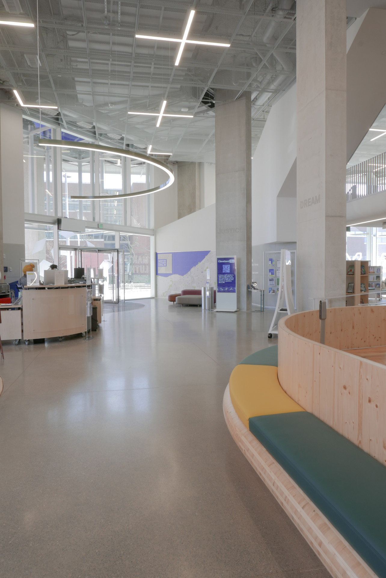 The Martin Luther King, Jr. Branch sits within Cleveland’s University Circle as a civic room embedded in the daily life of its surrounding neighborhoods. The new two-story library expands on the branch’s long history as a shared cultural space, shaping an environment where reading, gathering, and public life overlap.