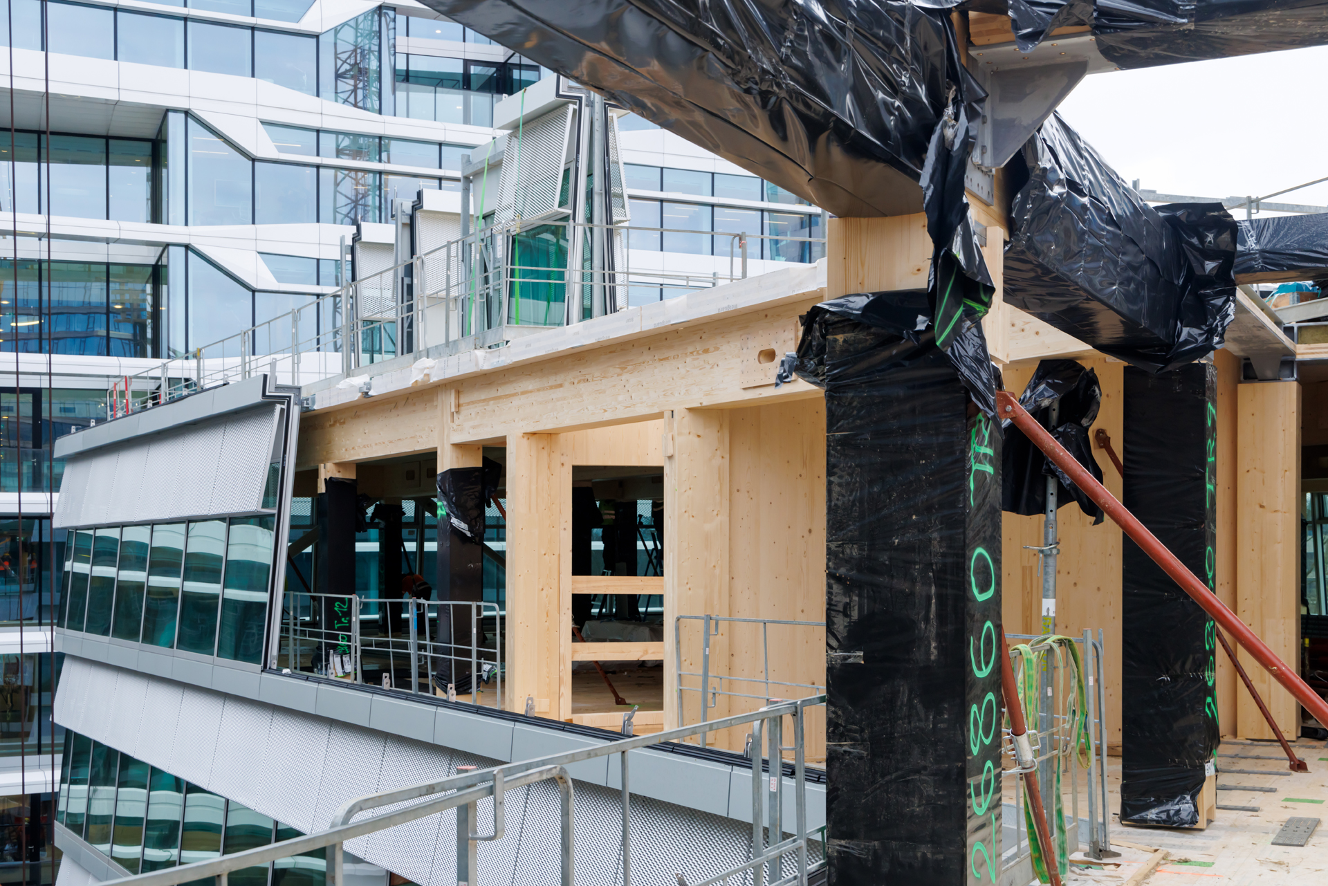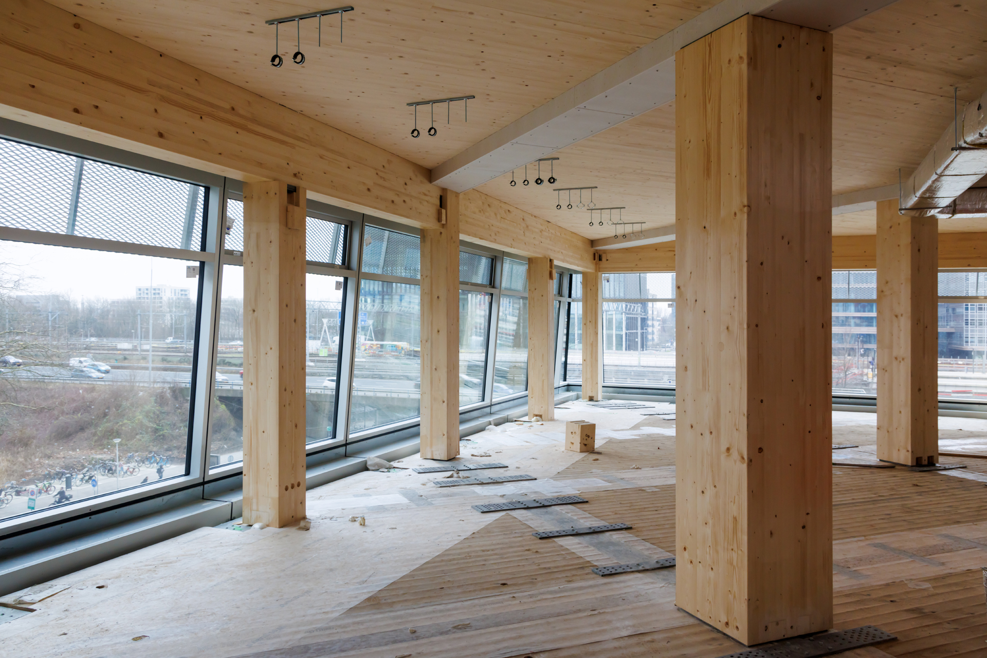 The CubeHouse is a 13-story hybrid-timber office building with approximately 16,300 m² of workspace, located at the “Boog” plot in Amsterdam’s Zuidas. Positioned above an existing parking garage, it bridges ground-level urban flows and an elevated working realm, signaling a new chapter in the district’s identity.
