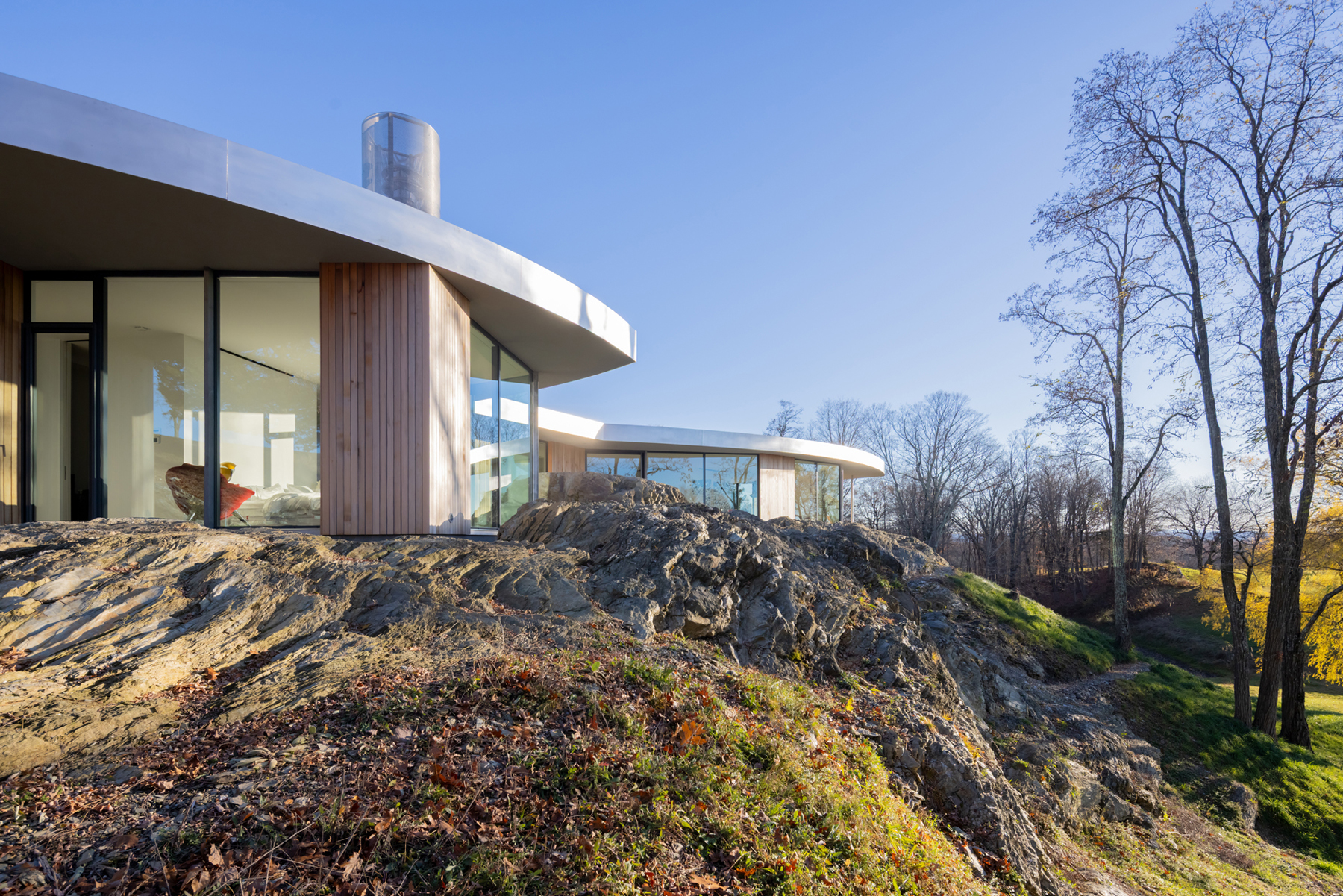 In the rolling hills of upstate New York, a single occupant seeks a pared-back modern home that allows one to live connected nature.