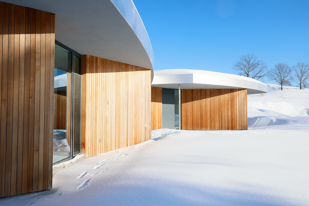 The unexpected aluminum clad roof edge stitches the assembly of walls and rooms together, and lends the house its distinctive character.