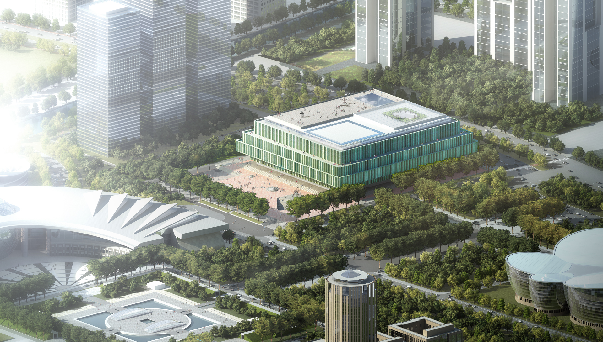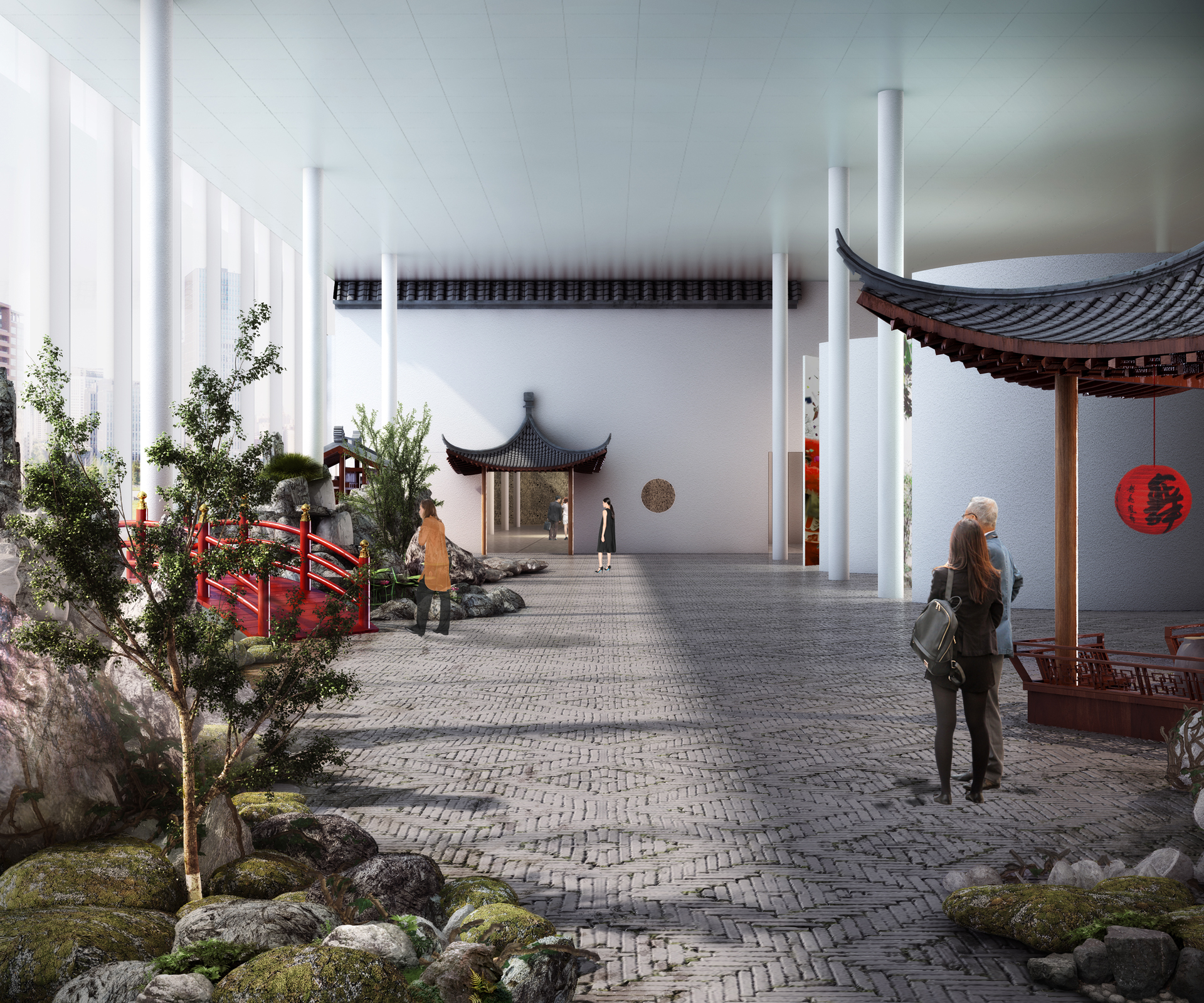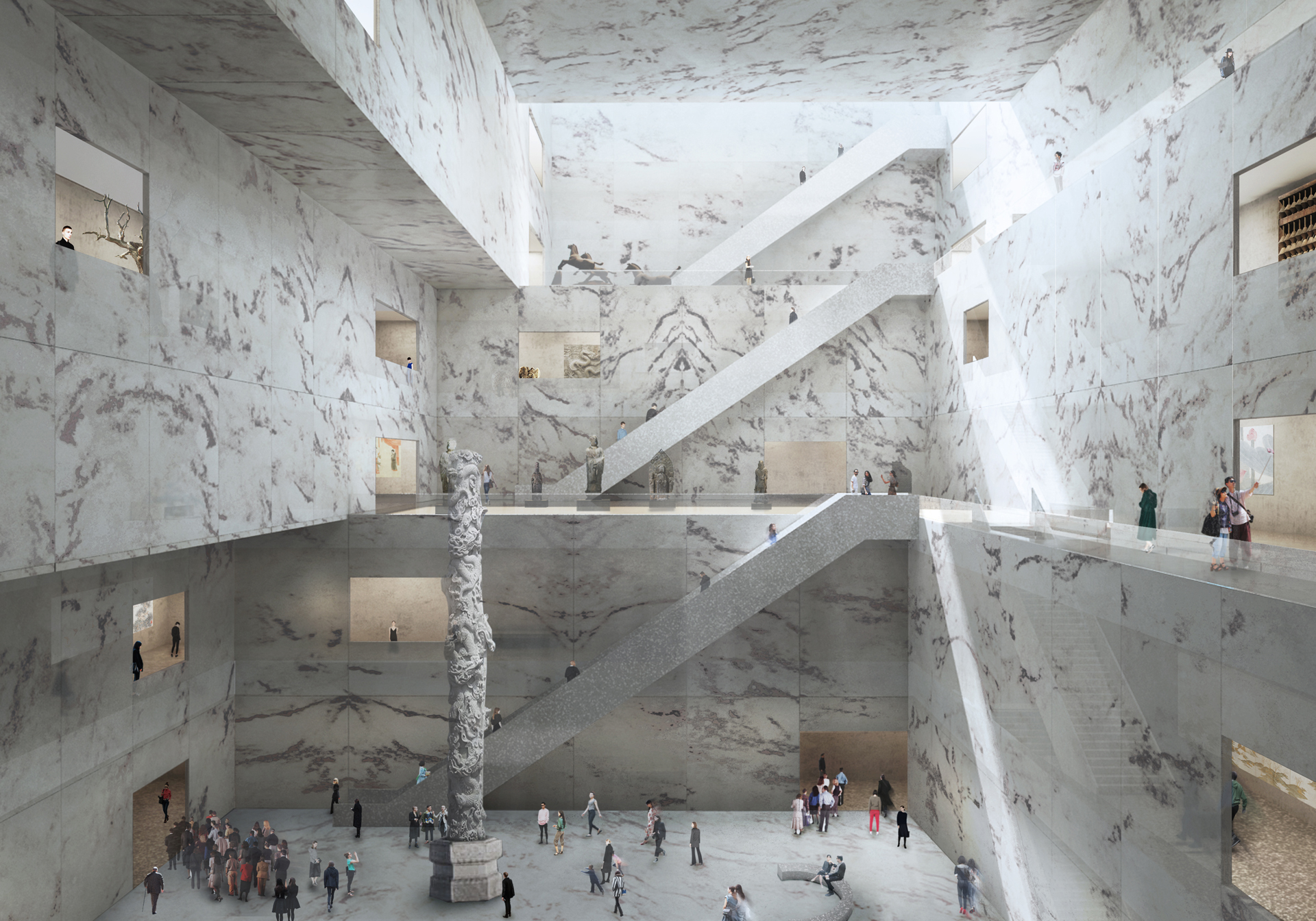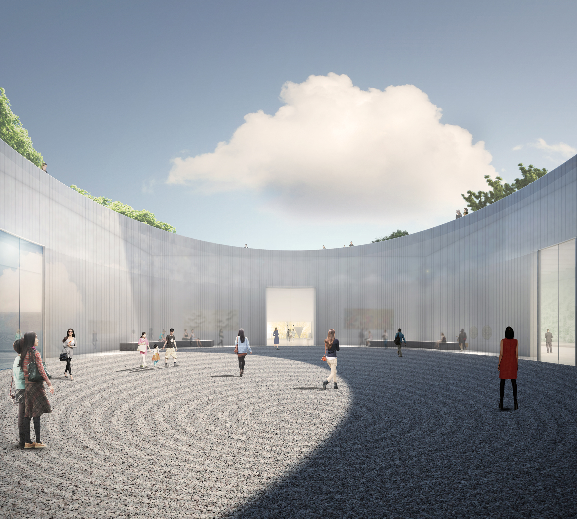 Our design expresses the union of Culture, Nature, and Architecture. The three main functional areas (storage, display, and management) are organized around three different atriums: "the hanging rock," "the cascade," and "the garden." Visiting the museum becomes a journey through time and space—ancient and modern stories mix, with the seasons' variations, with the museum's evolution. Visitors experience the space step by step, scenery by scenery, in a three-dimensional landscape.