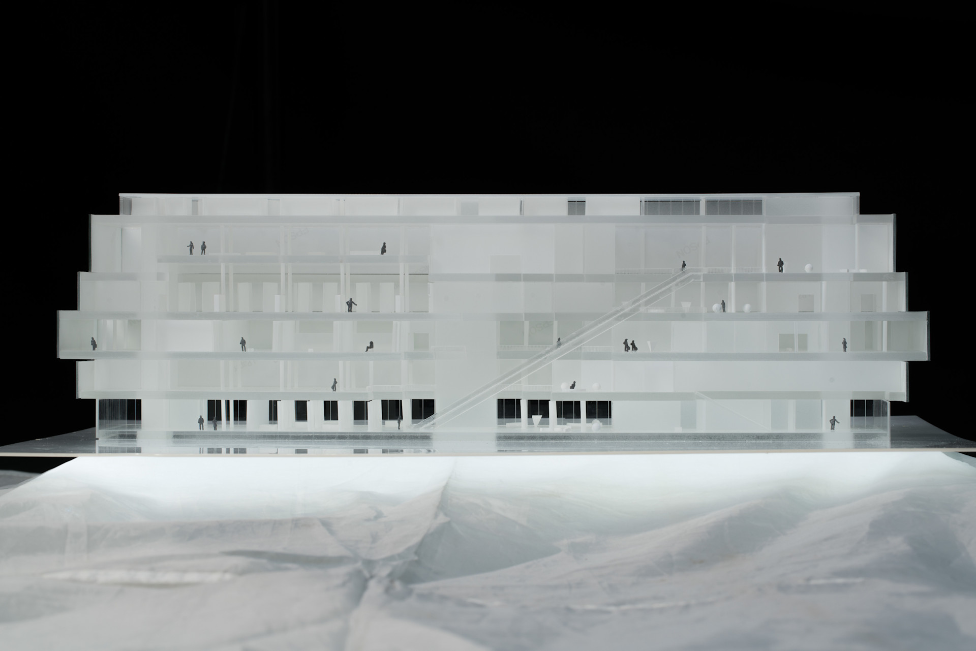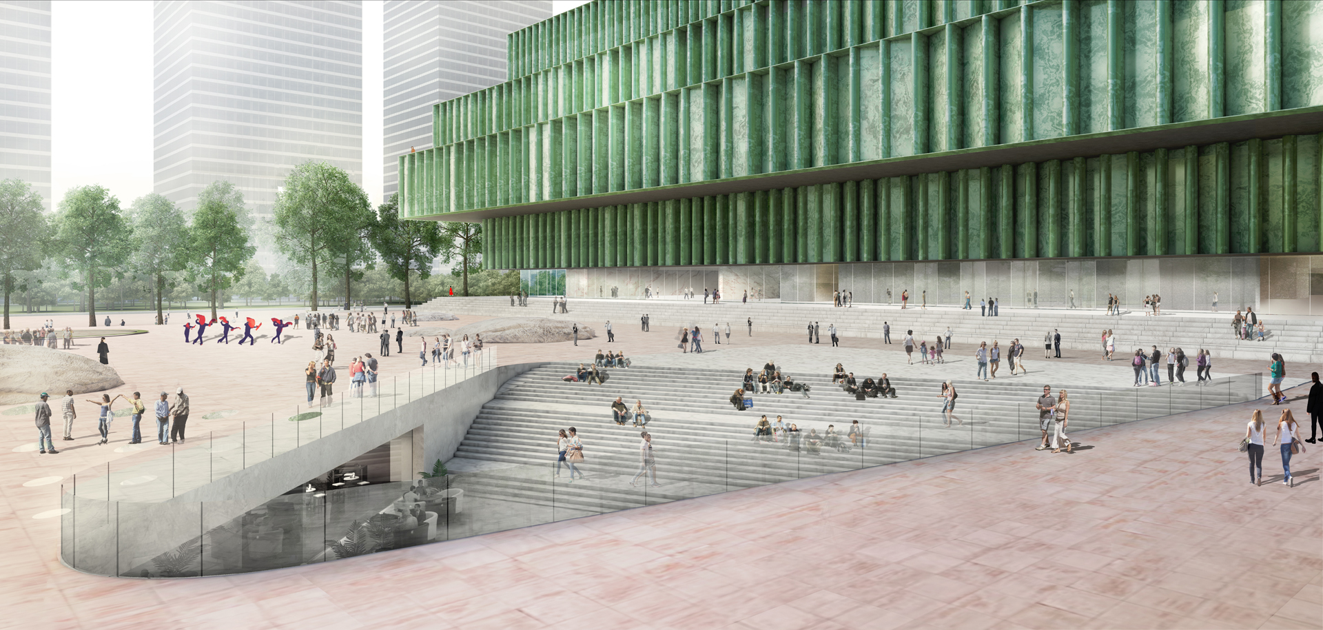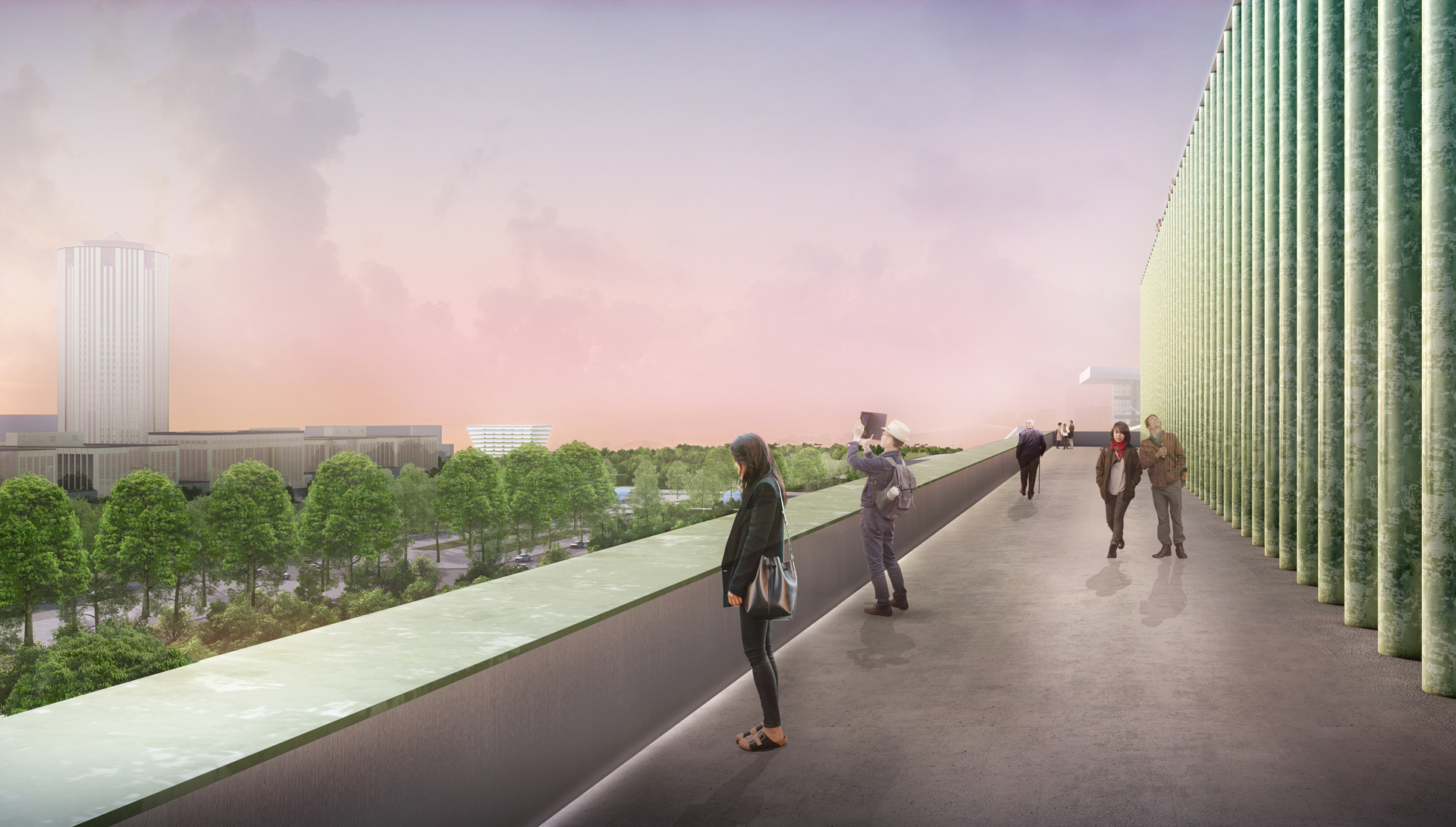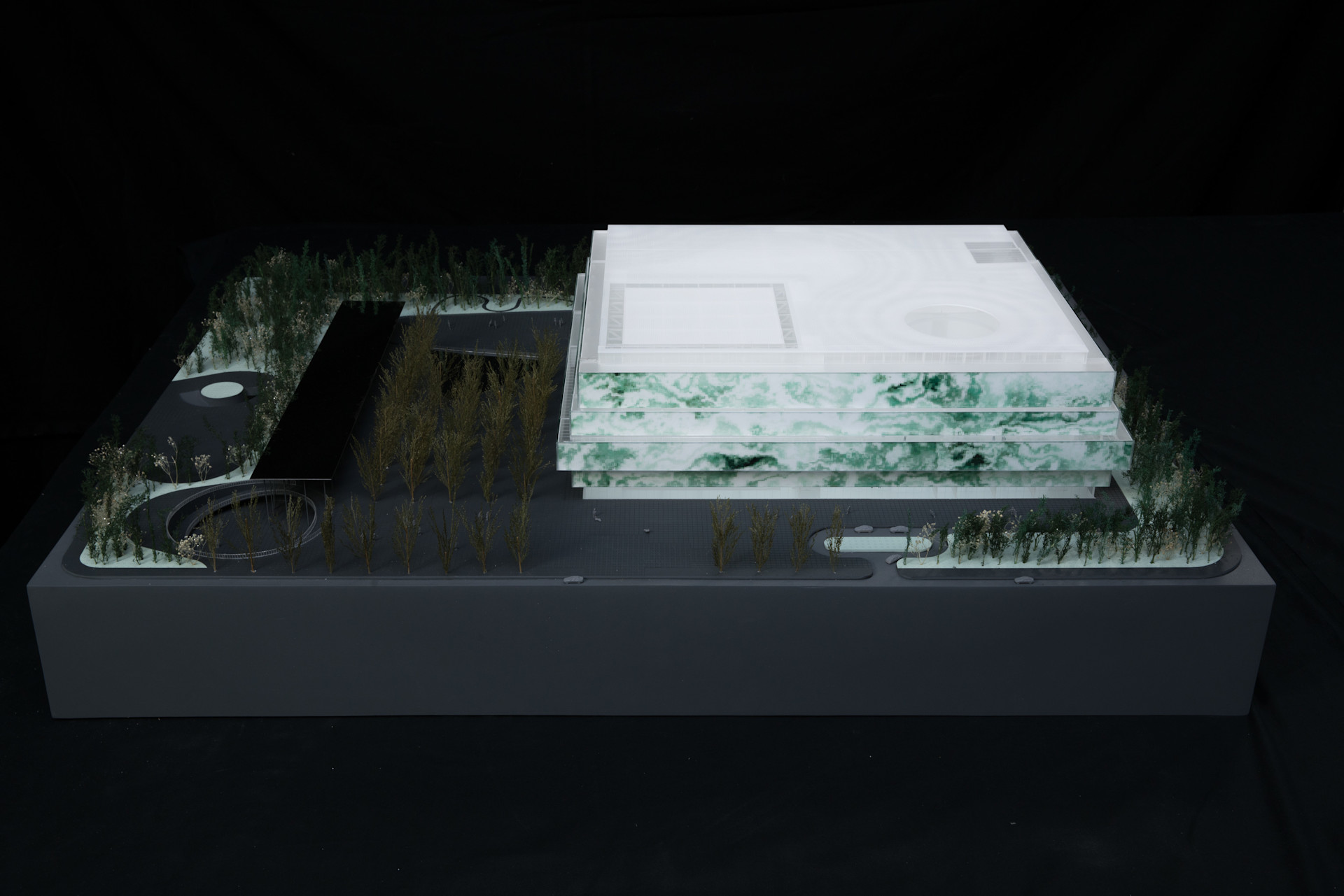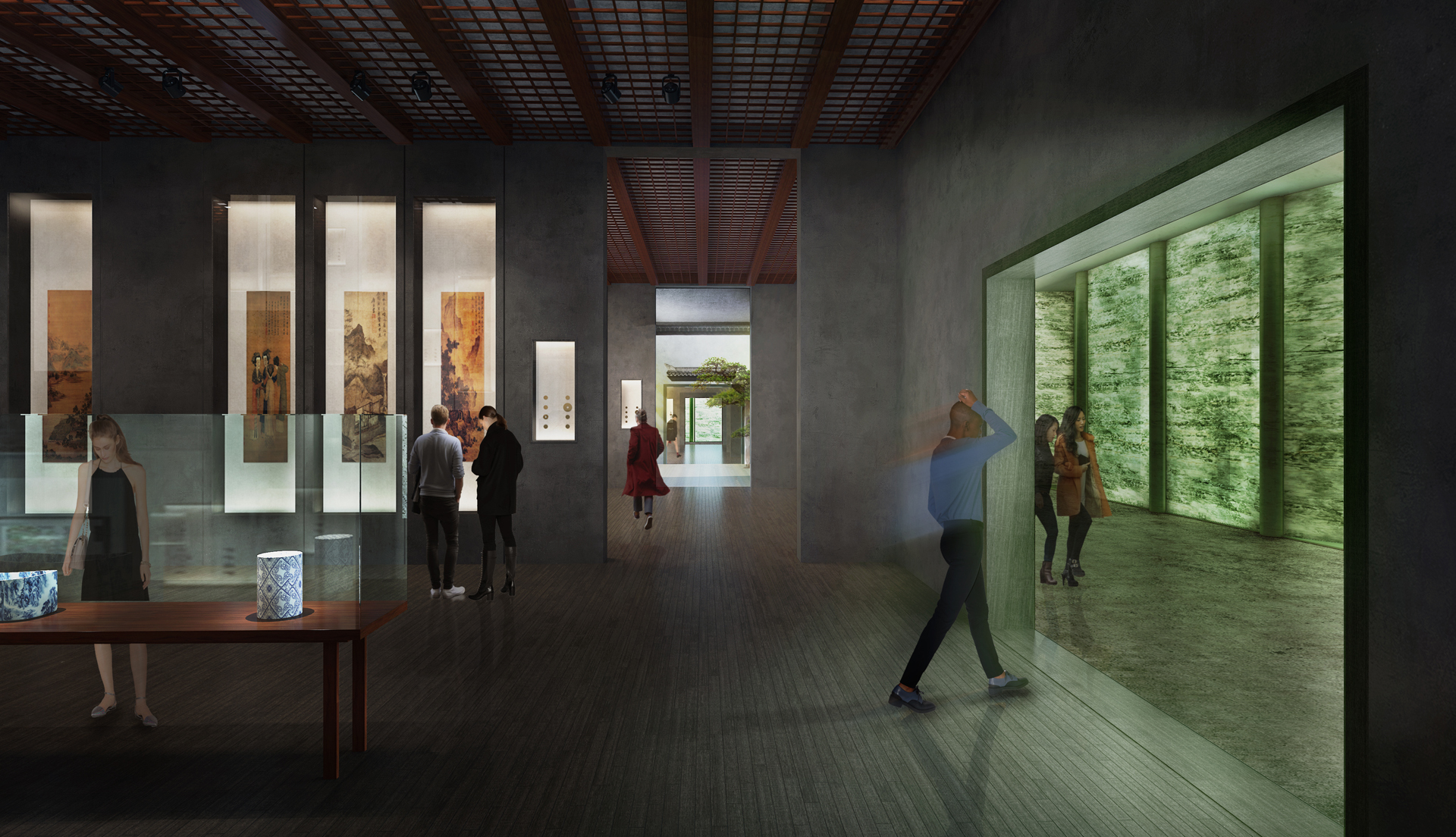 Our design expresses the union of Culture, Nature, and Architecture. The three main functional areas (storage, display, and management) are organized around three different atriums: "the hanging rock," "the cascade," and "the garden." Visiting the museum becomes a journey through time and space—ancient and modern stories mix, with the seasons' variations, with the museum's evolution. Visitors experience the space step by step, scenery by scenery, in a three-dimensional landscape.