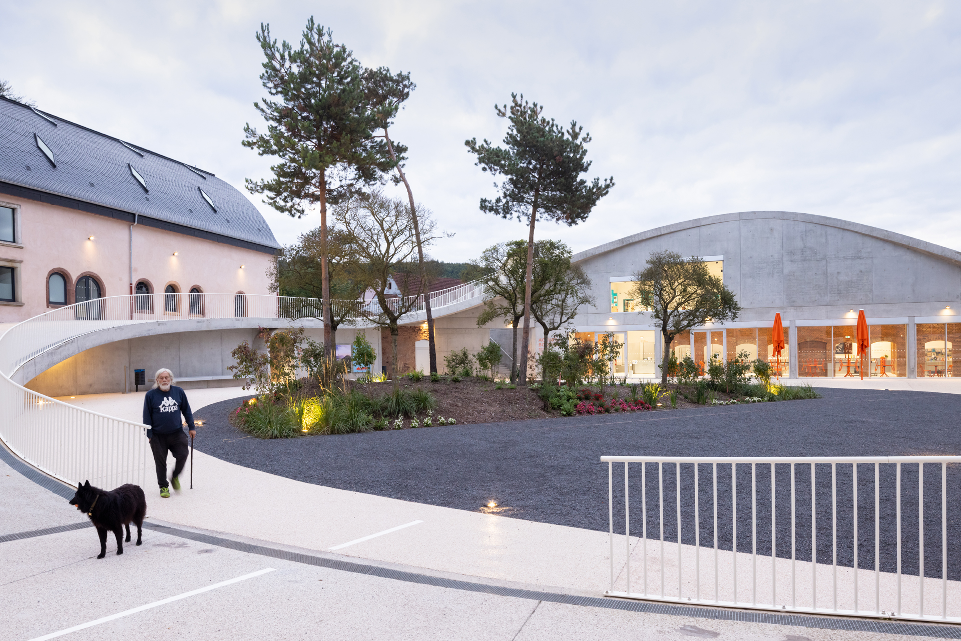 Three independent yet interrelated institutions: the glass museum (Musée du Verre et du cristal) – a living memory tracing the history of glass at the site; the CIAV (Centre International d’Art Verrier) – an international glass art center where traditional craftsmanship meets contemporary practices; and the Cadhame (Halle verrière) – a multidisciplinary cultural space hosting art installations, happenings and concerts are sited at varying floor levels. Our intervention unifies them to define a contemporary institutional identity in dialogue with an industrial heritage.